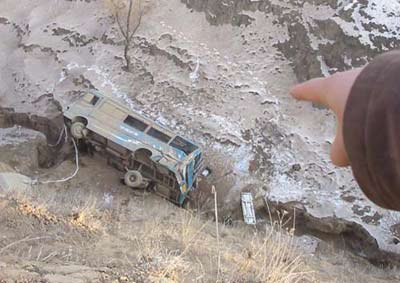 記者從懸崖旁的公路向下望去,只見一輛宇通客車“躺”在懸崖下,據(jù)在現(xiàn)場參與搶救的交警介紹,發(fā)生車禍的公路到懸崖底的落差達(dá)28米,事故發(fā)生后,他們接到電話后馬上趕到現(xiàn)場,及時對傷員進(jìn)行了搶救,29座的客車上,當(dāng)場死亡5人。