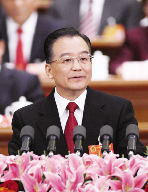 ???????溫家寶代表國(guó)務(wù)院向大會(huì)作政府工作報(bào)告。報(bào)告共分兩大部分:一、過(guò)去五年工作回顧;二、2008年主要任務(wù)。
