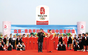 ????2008年4月29日上午,由北京市朝陽區(qū)、青島市市南區(qū)共同主辦的“北京—青島手拉手,和諧中國奧運(yùn)情”大型廣場(chǎng)文化活動(dòng)在青島市匯泉廣場(chǎng)奧運(yùn)倒計(jì)時(shí)牌前舉行。