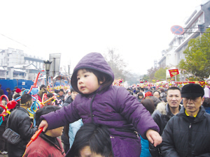 ????昨天雨雪暫停,很多市民和外地游客涌入南京夫子廟買燈觀燈,孩子們“高人一頭”賞花燈。 魏曉昕 攝