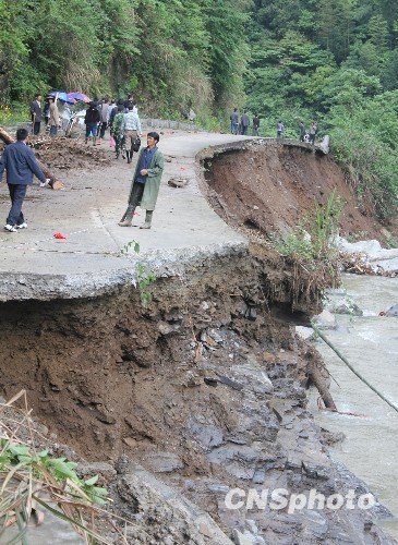 ?5月8日,搶險(xiǎn)人員在湖南省婁底市新化縣奉家鎮(zhèn)對(duì)被洪水沖毀的公路進(jìn)行搶修。強(qiáng)降雨近日頻襲湖南,目前強(qiáng)降雨已致湖南省婁底、懷化、衡陽、株洲、湘潭、邵陽、郴州7市169萬人受災(zāi),13人因?yàn)?zāi)死亡或失蹤,緊急轉(zhuǎn)移人口28597人,倒房6114間,造成直接經(jīng)濟(jì)損失13.63億元。 中新社發(fā) 郭國(guó)權(quán) 攝