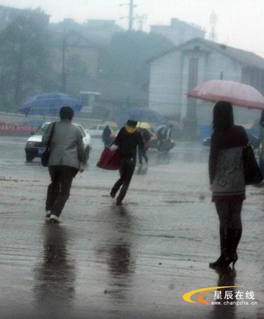 ????20日晚開始,長沙開始下起大雨。昨天早晨整個長沙城籠罩在暴雨中。8時許,暴雨沖刷著長沙大街小巷,給出行的市民帶來極大不便。“撐傘都沒用,我就在公交車站等了一會兒車,鞋子、衣服、褲子全濕了?!闭ド习嗟暮〗阏f。
