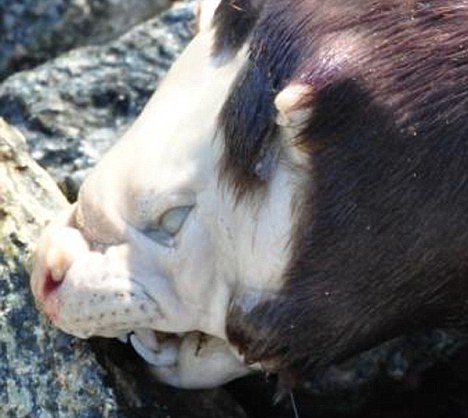 ![]() 基欽哈邁科西布鎮(zhèn)當(dāng)?shù)貎晌蛔o(hù)士拍攝到的奇怪動(dòng)物頭部照片