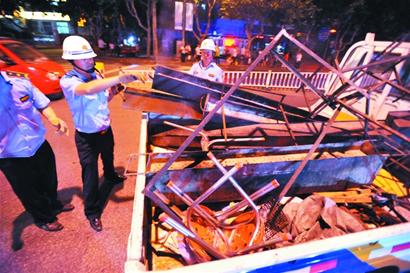 ????“東山二路的那個(gè)攤販剛才沒出攤,現(xiàn)在再過去看看?!睆堦?duì)長(zhǎng)告訴記者,東山小區(qū)旁邊的占路攤販擾民嚴(yán)重,居民多次舉報(bào),當(dāng)天傍晚7點(diǎn)左右執(zhí)法人員曾來查處,但這個(gè)攤主沒出攤。當(dāng)執(zhí)法人員再次來到東山二路拐角時(shí),這里的買賣正“紅紅火火”:擺攤的兩口子一起在爐子前烤肉,濃煙升起七八米高?!罢骟@了,你們?cè)趺匆粫?huì)就來了兩次?!睌傊饕姷綀?zhí)法人員直搖頭?!澳銈兙筒粦?yīng)該在這里干,大夏天的讓我們?cè)趺撮_窗?!币幻^(qū)居民見執(zhí)法人員收繳攤主烤肉爐子,終于出了一口氣。