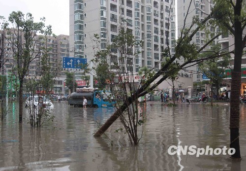 ????7月18日下午,安徽合肥氣象臺(tái)發(fā)布雷雨大風(fēng)黃色預(yù)警信號(hào)。合肥降大暴雨,風(fēng)力達(dá)7-8級(jí),導(dǎo)致市區(qū)多處內(nèi)澇,市內(nèi)交通嚴(yán)重堵塞。 中新社發(fā) 張婭子 攝