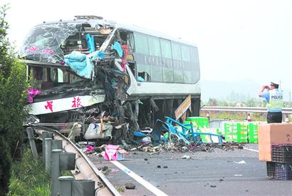 ????昨天早上6時40分許,同三高速萊西段被大霧鎖住,在同一路段3公里內(nèi)連續(xù)發(fā)生4起車禍。其中,一輛福建開往大連的臥鋪客車與一輛到蒙陰運(yùn)輸塑料制品的大貨相撞,造成一死十余人受傷。同三高速也因車禍造成數(shù)公里的車輛擁堵,至昨天中午12時許,同三高速萊西段恢復(fù)正常。
