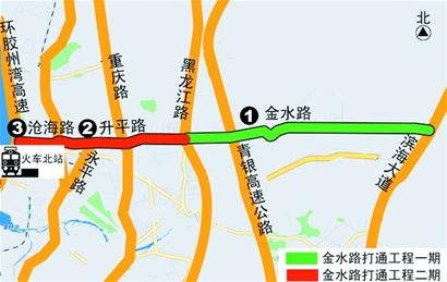 ????打通后的金水路由現(xiàn)狀的金水路、升平路、滄海路組成,沿途分別與環(huán)膠洲灣高速公路、安順路、膠濟鐵路、四流中路、永平路、重慶路、黑龍江路、青銀高速公路、濱海大道等道路相交,橫貫李滄區(qū)中部區(qū)域,是連接李滄區(qū)東、中、西部的東西軸線,也是連接青島火車北站和2014年世園會的重要交通要道。隨著青島火車北站的規(guī)劃建設(shè),將會誘發(fā)該區(qū)域交通量的極大增長,而目前區(qū)域內(nèi)路網(wǎng)不完善,南北車輛只能通過環(huán)灣大道、東西車輛只能通過太原路進出火車站,因此迫切需要貫通東西向主干路,以滿足交通量的不斷增長。