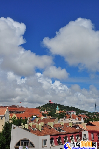 ??? 今天,青島陽光格外明媚,天上云卷云舒,有的像棉絮朵朵,有的似連綿山巒,海天一線間,宛如一幅幅美麗的畫卷。尤其在棧橋,行人如織,從遠處望去,猶如畫中游一般。