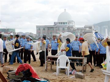 ????昨天上午,嶗山區(qū)9部門聯(lián)合執(zhí)法,對(duì)石老人海水浴場(chǎng)非法經(jīng)營(yíng)項(xiàng)目進(jìn)行了徹底整治。同時(shí),海水浴場(chǎng)的基礎(chǔ)設(shè)施改造也已經(jīng)全部完成,兩家正規(guī)運(yùn)營(yíng)商昨天正式進(jìn)駐海水浴場(chǎng)。繼本月24日試運(yùn)行后,石老人海水浴場(chǎng)將于30日向游客正式開放,收費(fèi)維持去年的標(biāo)準(zhǔn)。