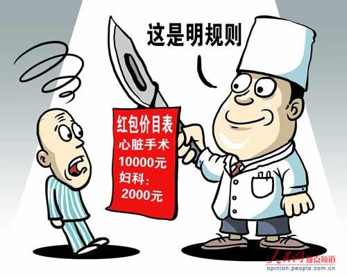 ????青島的一位住院患者家屬,在接受記者采訪時,透露了醫(yī)院收紅包的價目表:心臟中心:最高萬元,理由是在心臟動刀必須謹慎;婦科:600元到2000元不等,理由是女性都很重視身體;外科:1000元到2000元,緊急情況下更得小心;還有麻醉科:600元,別小看他們,手術(shù)中也很關(guān)鍵。如果不送紅包,不給提前安排手術(shù),手術(shù)刀痕會很粗,連麻醉師也耍小性子,敷衍了事,后果很嚴重的。