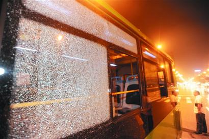 ????公交車后車窗莫名遭襲