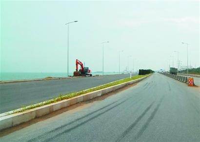 ????“目前道路西半幅進(jìn)展很快,二灰基層基本完成,瀝青中下面層完成14公里,到本月中旬,三層瀝青就全部鋪設(shè)完畢,西半幅可提前通車(chē)了?!惫こ特?fù)責(zé)人介紹。道路東半幅已完成下、中面層鋪筑,東側(cè)人行道板鋪裝3.5公里,路燈燈桿安裝完成10公里。國(guó)慶節(jié)期間,環(huán)灣大道主線將實(shí)現(xiàn)通車(chē)。為了保證工期,立交橋、管溝已經(jīng)實(shí)現(xiàn)24小時(shí)不間斷施工。目前,征遷工作已進(jìn)入收尾階段;。