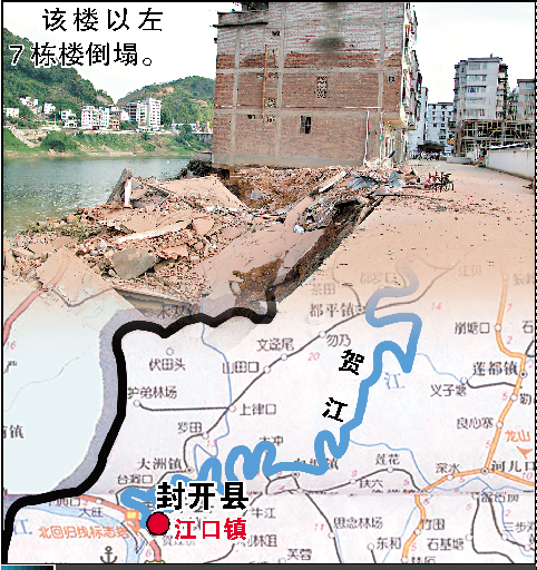 廣東封開河岸滑坡 七棟居民樓倒塌入江(組圖)