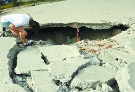 ????他聽鄒師傅說,大前天晚上六七點(diǎn)的時(shí)候,突然聽到“轟”的一聲。出來一看,企業(yè)門口不遠(yuǎn)處的公路塌方了,出現(xiàn)了一個(gè)“能把人埋進(jìn)去”的口子。