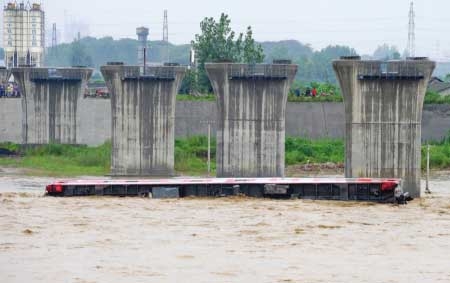 ????昨日下午3點15分,從西安開往昆明的K165次列車行駛到寶成鐵路德陽至廣漢間石亭江大橋處,大橋橋墩被水沖走,橋面突然斷裂,兩節(jié)車廂懸在半空,隨即列車兩節(jié)車廂掉入江中,所幸在危險發(fā)生以前,乘客全部被安全轉(zhuǎn)移,僅3人受了輕傷。目前鐵路部門正在組織人員全力搶險,旅客已經(jīng)全部轉(zhuǎn)運至成都。