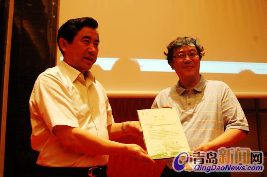 ??? 專題演講結束后,2014青島世界園藝博覽會執(zhí)行委員會聘請吳志強教授為2014青島世園會專家委員會專家,青島市副市長王建祥向吳志強教授頒發(fā)聘書。(青島新聞網(wǎng)記者 李濱)
