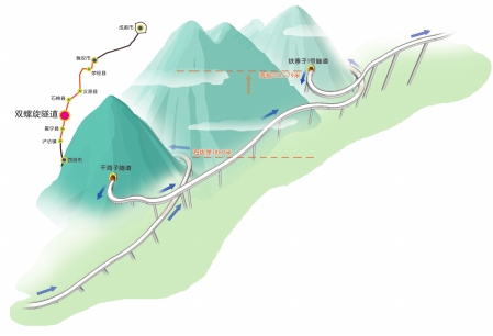 ????雅西高速公路力爭(zhēng)明年年底通車(chē),屆時(shí),市民就能駕車(chē)體驗(yàn)這兩座螺旋隧道。