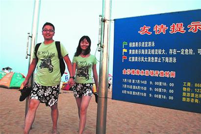 ????昨日下午,記者在金沙灘海水浴場看到,由于是浴場開放的最后一天,許多游客一直在大海里玩到晚上6時(shí)浴場打烊才依依不舍地離去?!拔覀兲疫\(yùn)了,聽說今天是浴場最后一天開放,要是明天來的話,都沒有沖水的地方了?!眱擅麃碜晕靼驳挠慰透嬖V記者。