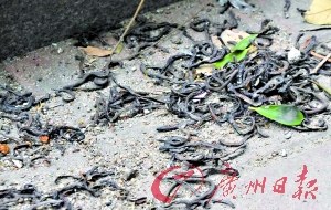 廣州萬條蚯蚓上街 專家稱與土壤變化有關(圖)