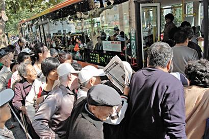 ????10月6日上午10時,記者來到了位于市政府西側(cè)的761路發(fā)車點,計劃乘坐10時30分發(fā)出的車,本以為提前半小時到達,可以輕松坐上一個座位。但現(xiàn)場情況完全出乎記者意料,等待的隊伍已經(jīng)排了兩三百米長,少說也有300名乘客。記者注意到,乘客中以中老年人居多,甚至不少是白發(fā)蒼蒼年逾八旬的老人。