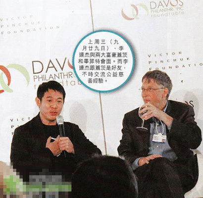 ????向來熱心慈善工作的“壹基金”創(chuàng)辦人李連杰繼跟美國(guó)前總統(tǒng)克林頓會(huì)面后,9月29日又獲邀出席比爾蓋茨和股神巴菲特在北京搞的慈善晚宴。