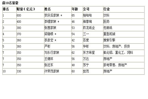 ????根據(jù)胡潤研究院公布的數(shù)字,今年中國十億富豪的人數(shù)增加到1363名,百億富豪達(dá)到97名。中國前1000名富豪平均財(cái)富比兩年前增長了64%,比去年增長了26%,其中醫(yī)藥、IT、零售和服裝行業(yè)增長最快。企業(yè)家財(cái)富增長迅速,十億富豪已達(dá)到1363人,百億富豪97人;10年前十億富豪僅24人,百億富豪僅1人。