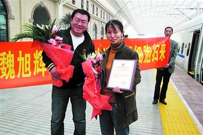 ????昨天上午10時50分,張雯準(zhǔn)時回到青島,比張雯早回到青島的魏旭輝也來到火車站。“我是10月30日開始打動員劑的,那個時候魏旭輝就已經(jīng)捐獻(xiàn)完了?!睆場┱f,魏旭輝在實施捐獻(xiàn)的時候每天都發(fā)短信把身體遇到的反應(yīng)情況告訴她,所以到了她捐獻(xiàn)的時候就不緊張了?!拔揖璜I(xiàn)的時候,身體基本上沒有反應(yīng)?!蔽盒褫x說,可能是自己體格較好,并且患者是一名小姑娘,需要的造血干細(xì)胞量稍小的原因吧。