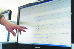 ????記者在地震與火山監(jiān)測中心大廳內(nèi)看到,在兩個大屏幕及多臺電腦前,工作人員正在仔細(xì)監(jiān)測省內(nèi)地震與火山活動數(shù)據(jù),認(rèn)真核對24小時實時監(jiān)控信息。記者注意到,吉林省內(nèi)各地區(qū)的地震與火山地震波都出現(xiàn)在大屏幕上。溫主任找到長白山火山地震波告訴記者,該火山近期活動非常平穩(wěn),并無異常。
