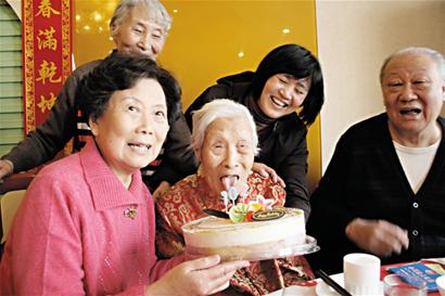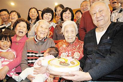 102壽星生日做鬼臉 五世同堂講養(yǎng)生秘訣(圖)