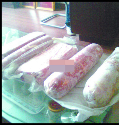 ????他將記者引入二樓的辦公室,辦公室內(nèi)還有一名工作人員 ,里面有兩張辦公桌,一張沙發(fā)和一個桌子,進(jìn)入辦公室,李先生便將袋子內(nèi)的肉卷攤到了桌子上。