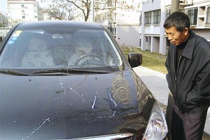 ????停在自家樓下的愛車被人深夜用白色油漆涂鴉,車主夏小姐清晨下樓開車時,看到自家車身上被甩上的幾行白色斑點,無奈之下撥打110報警?!肮馕覀儼偻ɑ▓@三期這條甬路上就有3輛車被人潑了白色的油漆,其中有一輛車的司機因為急著上班,已經開車離開了?!弊蛱烨宄?,記者趕到位于青山路的百通花園聯系夏小姐了解到,她的商務車是去年剛買的,之前曾經被人劃傷過車身。
