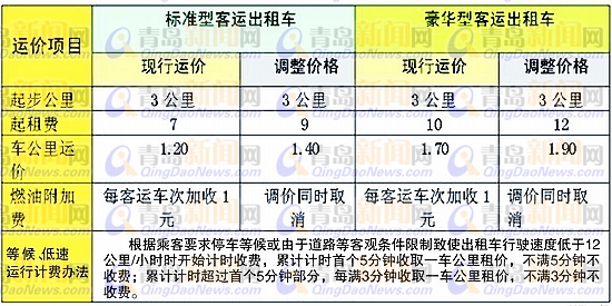 ????根據(jù)新的運價方案,標準型(原普通型、標準型現(xiàn)統(tǒng)稱標準型)客運出租汽車基價公里維持3公里不變,起步費由現(xiàn)行7元調(diào)整為9元,豪華車起步費由現(xiàn)行10元調(diào)整為12元。調(diào)價同時取消現(xiàn)行每客運車次加收的l元燃油附加費。
