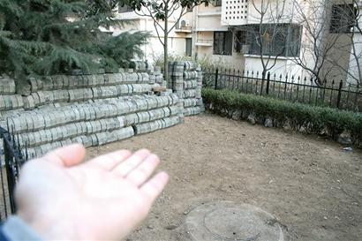 ????據(jù)張先生介紹,這塊被鏟掉草皮的綠地位于15號樓前,昨天下午3時左右,記者來到現(xiàn)場看到,在15號樓南側(cè)草坪中的確有塊“不毛之地”,面積近10個平方米,里面堆放著近百塊方磚,等待鋪地使用。記者注意到,這塊空地四周圍占的鐵柵欄都是新的,在靠近馬路的一側(cè),鐵柵欄還被改造成一扇門,上面鎖著鐵鎖。