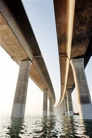 ????經(jīng)歷了三個(gè)多小時(shí)的海上歷程,青島海灣大橋的壯美已深深地印在了我的腦海之中,即使當(dāng)我落筆記錄海上看橋的點(diǎn)點(diǎn)滴滴的時(shí)候,心中的那份激動(dòng)仍沒(méi)有平息?!昂>啊笔乔鄭u最主要的特色,但多少年來(lái),人們?cè)诤_呅蕾p到的,只能是自然的景色。而當(dāng)青島海灣大橋建成之后,膠州灣上將出現(xiàn)青島的地標(biāo)性建筑?!皩?lái),青島的海上旅游會(huì)將海灣大橋作為一個(gè)重要的景點(diǎn)。 ”昨天,城投旅游集團(tuán)有關(guān)負(fù)責(zé)人對(duì)記者說(shuō),青島海灣大橋作為青島的地標(biāo)性建筑,建成后成為青島的一個(gè)重要的旅游資源。“將來(lái),游客來(lái)到青島后,我們會(huì)帶著他們乘飛機(jī)空中看大橋。 ”這位人士介紹,作為世界第一的跨海大橋,海灣大橋?qū)τ慰途哂泻艽蟮奈Α?/p>