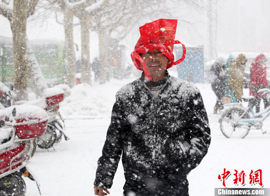 12月25日,威海文登市民在雪中前行。自24日開始,山東半島的煙臺(tái)威海地區(qū),持續(xù)降小到中雪,局部大雪,威海市氣象臺(tái)發(fā)布道路結(jié)冰黃色預(yù)警和大風(fēng)黃色預(yù)警,持續(xù)的低溫降雪對(duì)當(dāng)?shù)毓方煌ㄔ斐闪擞绊?,市民在白茫茫雪中度過圣誕節(jié)。中新社發(fā)陳宏青 攝