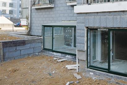 ????記者在林語(yǔ)山畔15號(hào)樓前看到,有三戶居民對(duì)地下室進(jìn)行了改動(dòng),地下室前的空地低于路面近50厘米。而這幾戶地下室的窗戶,與相鄰樓座同樣戶型的窗戶相比,明顯大了許多,窗戶下半部分的墻面裸露在外。這里的窗戶原來(lái)只有60厘米,陽(yáng)臺(tái)墻外沒(méi)有瓷磚的地方原來(lái)都是在地下的。”李先生稱,幾天前地下室的業(yè)主找來(lái)一輛挖掘機(jī),將樓前的這塊空地下挖了近50厘米,原來(lái)的小窗戶也改成了大的落地窗,有的業(yè)主甚至將陽(yáng)臺(tái)私自擴(kuò)建出來(lái)一塊?!捌降乇幌峦诹?0厘米,窗戶又被擴(kuò)建,地下室本是樓的根基,這么折騰,這11層的樓能受得了嗎?”李先生告訴記者,他們樓上的業(yè)主跟物業(yè)反映了許多次,可是物業(yè)又沒(méi)有執(zhí)法權(quán),只能過(guò)來(lái)勸阻,物業(yè)的工作人員一走,他們又開(kāi)始干。