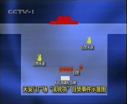 2001年農(nóng)歷除夕(1月23日),正當(dāng)人們準(zhǔn)備喜迎蛇年春節(jié)的時(shí)候,7名來(lái)自河南省開(kāi)封市的“法輪功”癡迷者卻在李洪志妖言的蠱惑下,在北京天安門(mén)廣場(chǎng)點(diǎn)火自焚,兩人被及時(shí)發(fā)現(xiàn)制止,一人當(dāng)場(chǎng)被燒死,4人嚴(yán)重灼傷,面目全非。