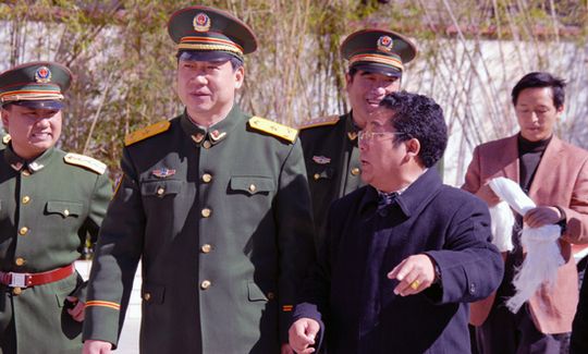 新華網(wǎng)資料圖:王長河少將在波密縣武警森林中隊檢查指導工作。