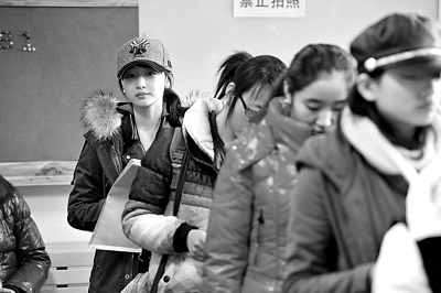 ?圖為:《山楂樹之戀》女主角扮演者周冬雨在排隊報名現(xiàn)場。(北京電影學院提供)