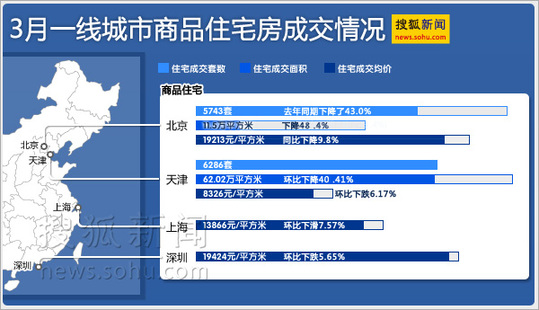 ????北京出現(xiàn)的情況并非個(gè)案,天津、杭州、上海、深圳等地也出現(xiàn)了成交縮水、房?jī)r(jià)下行的態(tài)勢(shì)。中國(guó)指數(shù)研究院的監(jiān)測(cè)顯示,2011年3月天津市商品住宅成交6286套,成交面積62 .02萬平方米,環(huán)比下降40 .41%,均價(jià)8326元/平方米,環(huán)比下跌6.17%。價(jià)格波動(dòng)雖較為緩和,但已連續(xù)四個(gè)月下行。該院數(shù)據(jù)顯示,3月上海市商品住宅成交均價(jià)為13806元/平方米,環(huán)比下滑7.57%;3月深圳市商品住宅成交均價(jià)為19424元/平方米,環(huán)比下跌5.65%。