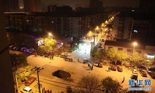 4月25日晚11時左右,北京豐臺石榴莊路段發(fā)生路面塌陷事故。據(jù)悉,有一輛貨車陷入坑中,司機(jī)已被救出,事故未造成人員傷亡。具體事故原因仍在進(jìn)一步調(diào)查中。圖為4月26日上午,搶險人員在塌陷路段使用大型機(jī)械進(jìn)行應(yīng)急搶險施工。圖片來源:新華網(wǎng)