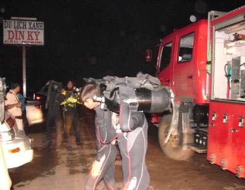 5月21日,救援人員在越南平陽省游船沉沒地點(diǎn)實(shí)施救援。 新華社發(fā)/越通社