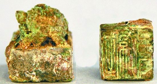 ????“我們當(dāng)時(shí)在大鬧埠考古發(fā)掘中,無意間發(fā)現(xiàn)了一個(gè)很小的青銅器?!蓖躔^長介紹說,他們發(fā)現(xiàn)這個(gè)青銅器時(shí)上面全是泥土,后來整理發(fā)現(xiàn),這是個(gè)直徑只有2厘米的方形青銅印章,其頂部為龜形。
