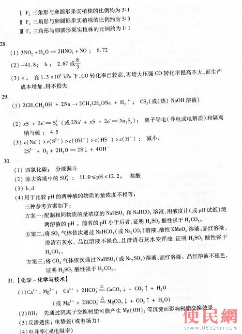 2011年普通高等學(xué)校招生全國統(tǒng)一考試(山東卷)文科綜合試題參考答案