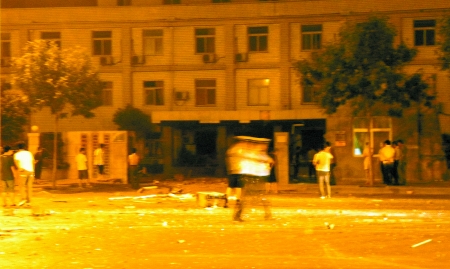 鄭州公安局危險(xiǎn)物自燃后爆炸 大門(mén)飛馬路(圖)