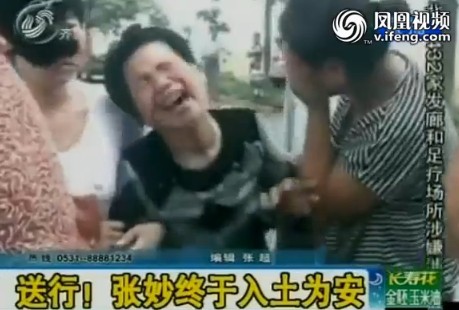 ????昨天張妙的葬禮在她的家鄉(xiāng)西安市長安區(qū)宮子村舉行,她的丈夫王輝在朦朦細(xì)雨中捧著白色的骨灰盒,數(shù)百名村民前來為張妙送行,為了讓張妙體面莊重的下葬,家人和村里特地請(qǐng)了樂隊(duì)演奏哀樂,張妙的母親哭的嗓子都啞了,在出事后的八個(gè)月,在藥家鑫執(zhí)行死刑的第12天,張妙終于可以入土為安了。