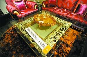 一張達芬奇品牌的茶幾被廣州工商部門貼上封條。(莫偉濃/攝)