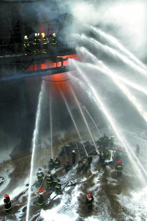 16日下午,中石油大連石化公司一煉油裝置發(fā)生泄漏起火。新華社發(fā)