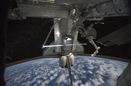 美國宇航局提供的照片顯示,“阿特蘭蒂斯”號航天飛機準備脫離國際空間站