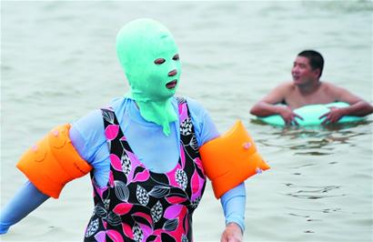 青島海水浴場游泳的市民